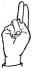 На ћирилици написано ВАЛЕНТИНА ТУПЕША састоји се из 15 слова [?]. Исписано ћириличном једноручном азбуком за глувонеме: